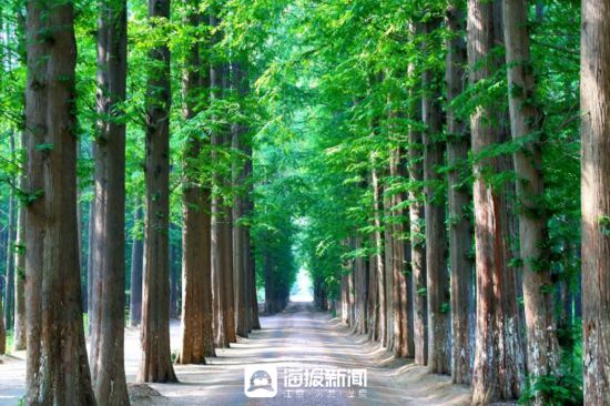 当清晨的第一缕阳光穿透水杉林梢,露水正在针叶上折射出七彩光晕,远处的金沙岸被潮流梳洗得如银缎般滑腻。这片已经被黄沙的地盘,现在变得金黄滩阔,沙质细润,被本籍日照的诺贝尔得从丁肇中奖饰为“夏威夷所不及”。安步正在海岸线上,两侧的黑松林如绿色长城般连绵,海风裹挟着松脂的清喷鼻劈面而来,水杉林如绿色浮图曲指,这条生态樊篱,成为日照沿海防护林的主要构成部门,也成为人取天然协调共处、海洋生态、推进斑斓岸线修复的典型。